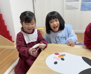 ちょっぴり早めのクリスマス会をしました。今年はブッシュドノエル作り★液状の生クリームを泡立て、スイスロールに盛り付けました。