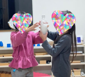 小学生特別教室の午後の部は制作活動。お家に余っているビーズや、小さくて着られなくなった服などを使い、お片付けボックスを作りました。